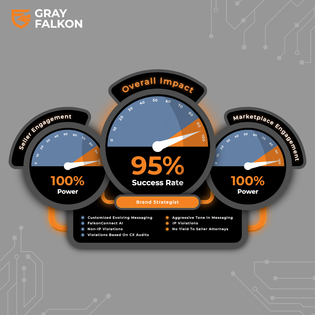 Gray Falkon’s proprietary AI and automation technology sole purpose is to protect your brand’s online sales and guard against rogue sellers. Gray Falkon’s technology evicts up to 95% of illegitimate sellers by simultaneously activating three components: data science, seller engagement, and marketplace violation filing.